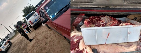 El día 07 cte. en horas de la tarde, de acuerdo al operativo retén control vehicular e identificación de persona, dispuesto por la Secretaría de Seguridad Municipal, en Av. Hipólito Irigoyen y Chubut, en ocasión en que efectivos policiales de Patrulla Rural Salto e inspectores de la Dirección de Tránsito y Control Urbano, se hallaban realizando tareas propias del momento, detienen la marcha de un automóvil Fiat Regata, color bordó, dominio colocado TSB-539, conducido por el ciudadano Pelagalli, Diego Julián, domiciliado en Salto a quien, requerida la documentación del vehículo, posee la misma en regla.- Asimismo se solicita la apertura del baúl, encontrando en el mismo aproximadamente 100 kilos de carne porcina, trozada, envuelta en nylon y otras en bandeja plástica.- Solicitado acredite la propiedad de la misma, carece de documentación, lo mismo sucede en cuanto a la falta de saneamiento. higiene, habilitación de Senaasa para el transporte, control bromatológico. - En virtud de ello se evacúa consulta al Juzgado de Faltas Municipal a cargo del Dr. César Dimántova, quien dispuso las actuaciones contravencionales de rigor por infracción a la Ordenanza 102/92 y CCDTES, decomiso de la mercadería y posterior desnaturalización.- Se cree que dicha carne porcina tendría como destino la fabricación de embutidos y chacinados para venta al público sin control bromatológico y habilitación comercial para hacerlo.- También se efectúa investigación en cuanto al lugar del faenamiento clandestino y podría tratarse de una quinta situada en la vecina localidad de Gahan.