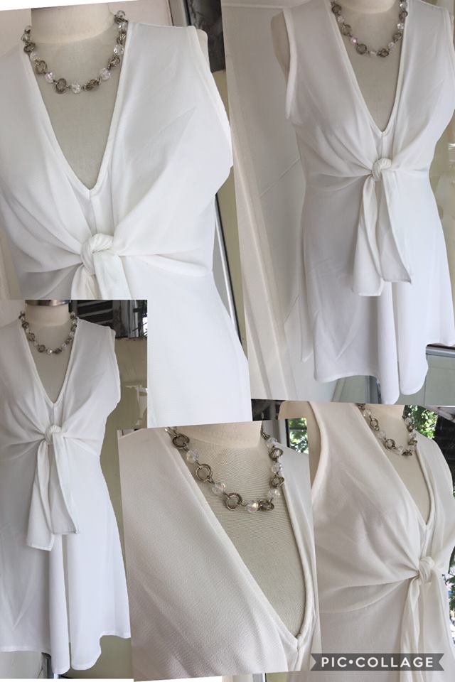 Hoy en su espacio Femme nos trae una propuesta deslumbrante para despedir el año con todo. Como es sabido ya el año se termina y queremos vernos arregladas, diferentes a todos los días, y sobre todo cómodas para recibir el año nuevo, y es por eso que el look de hoy reúne todas esas condiciones y mucho más... El mismo se compone de una sola prenda que es muy utilizada en esta época de fiestas, y es un recurso que nos salva siempre a la hora de vestir para un evento importante: EL VESTIDO En el caso de hoy elegimos seguir la tradición del fin de año con un vestido de crepe en color blanco, el cual lleva un forro interno ( así impide que se trasluzca demasiado), un clásico que nunca pasa de moda. El mismo tiene un corte que en el mundo de la moda se le llama princesa (se ciñe debajo del busto y cae suelto dando una forma más estilizada y formando aún más la cintura, además de disimular la pancita), el cual es ideal para todo tipo de cuerpo y muy sentador sobre todo para las más rellenitas o las que no poseen mucha cintura. Su largo es de unos 2 cm por encima de la rodilla (tomando como parámetro una mujer de una estatura media). El corte superior es musculosa de breteles bien anchos ( lo cual me permite llevar un buen corpiño en el caso de ser necesario). Posee un escote en V que finaliza en un lazo que se anuda y cae hasta el ombligo, le sienta muy bien a mujeres con mucho busto ya que la forma del mismo permite un buen sostén , aunque a las que tienen poco también les favorece porque en esa zona tenemos más volumen debido al nudo. También a las mujeres de torso corto les queda bien este tipo de corte ya que el escote en forma de V estiliza y alarga. Para dar un toque de sofisticación elegimos llevar un collar corto, de arandelas plateadas con piedras transparentes, que se mimetizan con el vestido, aunque se puede optar por dorado o cualquier color que queramos ya que el blanco lo permite perfectamente. Lo mismo aplica para el tono del calzado o cualquier otro accesorio que deseemos llevar esa noche especial.