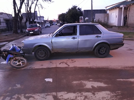 Siendo las 12.00 horas, se toma conocimiento de un accidente de tránsito ocurrido en intersección de las calle Soldado Walter Almiron y Profesor Dominguez de esta ciudad, lugar una motocicleta marca Guerrero, color roja, conducida por masculino de (22) años colisiona con vehículo marca Volkswagen Bora, conducido por masculino mayor de edad.- Producto de la colisión, solamente se constataron daños materiales; motivos por los cuales ambos conductores intercambiaron datos para realizar los correspondientes tramites en sus respectivos seguros.-